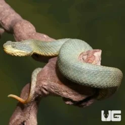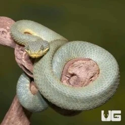 WE HAVE ADULT GREEN PATTERNLESS SQUAMIGERA BUSH VIPERS FOR SALE. HERE ARE SOME HIGHLIGHTS: